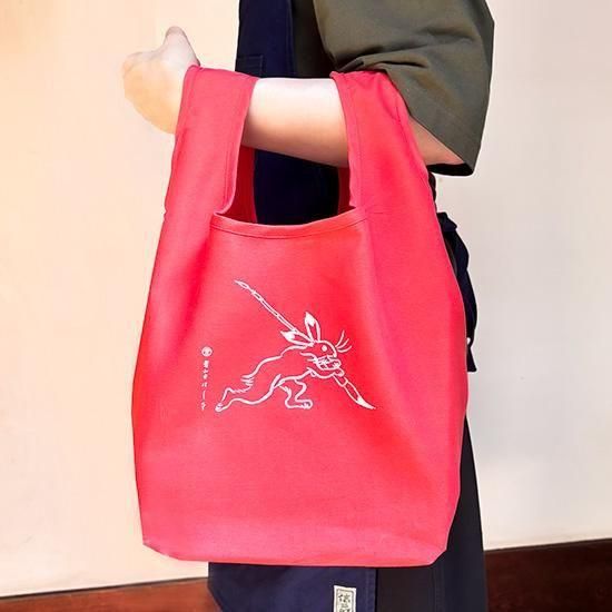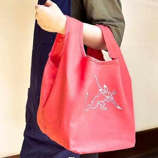 エコバッグ 小 筆持ちうさぎ 赤(新色)