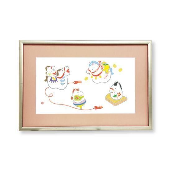 小槌をのせた馬、仲良し親子の馬、独楽に乗った馬。